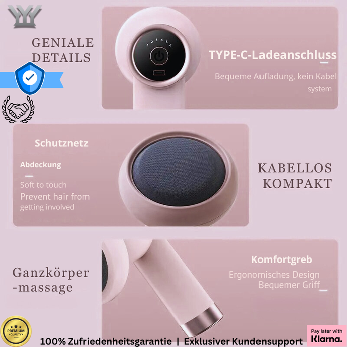 Die Massagepistole lockert verspannte Muskeln, fördert die Durchblutung und unterstützt die Regeneration nach dem Training oder einem langen Arbeitstag. Mit verschiedenen Aufsätzen und individuell einstellbaren Intensitätsstufen erreichst du gezielt jede Muskelgruppe –von tiefem Gewebe bis zur sanften Entspannung. Kompakt, leistungsstark und jederzeit einsatzbereit, ob zuhause, im Gym oder unterwegs.